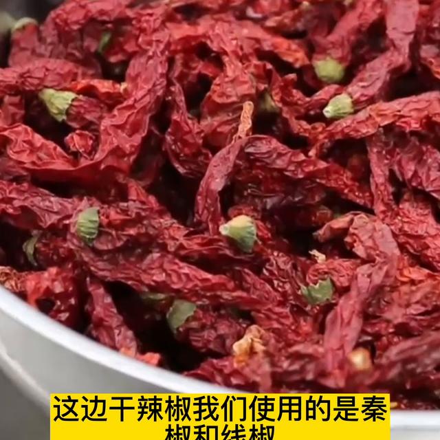 接下来是干辣椒的处理。这边干辣椒使用的是秦椒和线椒,1:1一起是200克。