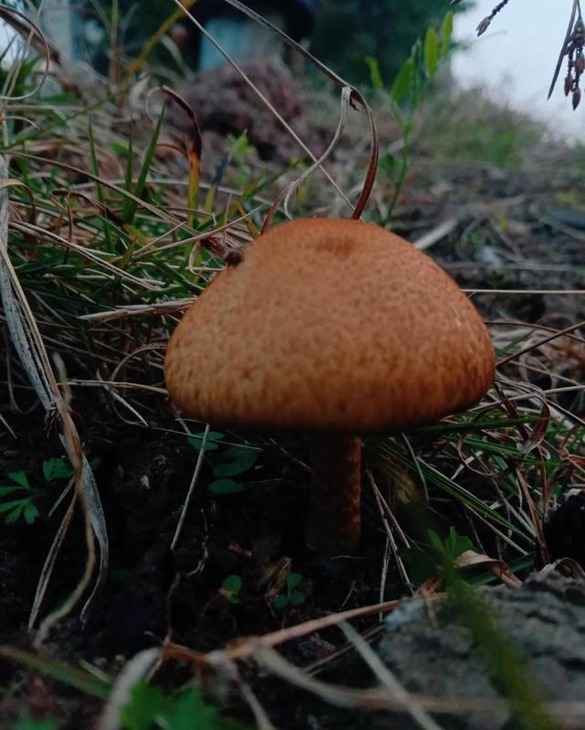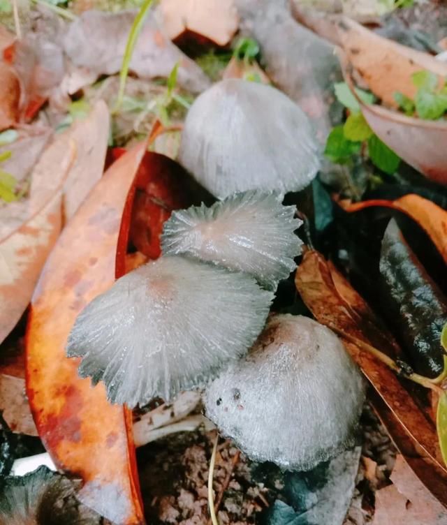 (三)晶粒小鬼伞,这一丛菌盖上的菌幕残余保存得相对完整。