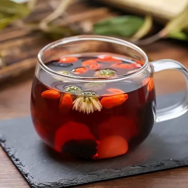 材料:玫瑰5朵 枸杞10粒 麦冬2g 红枣2枚 牛蒡1g