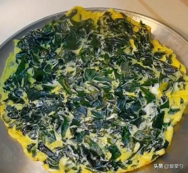 食材:干的裙带菜、鸡蛋、蒜花、盐