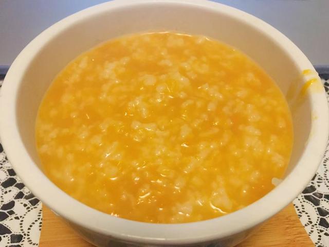 出锅后的南瓜已经非常软了,用勺子一搅就能和白米粥融合在一起(如下图)。泉歌是用电饭煲自带的煮粥功能做的,加好水、插上电,1个半小时就好,期间可以去做别的事情。这种做法,很适合带孩子没时间看着炉子的宝妈。如果是上班族,那就前一晚切好南瓜放好米和水(只需5分钟),按下煮粥预约键,第二天起来就能吃。